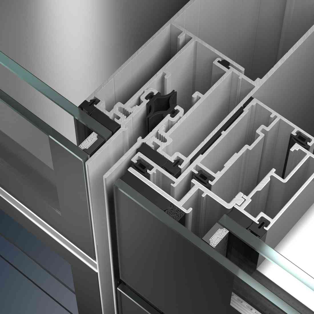 • Mặt tiền được thiết kế với sự xuất hiện mở rộng của mặt tiền bằng kính, với chiều rộng mặt hẹp lên tới 65 mm ở bên trong